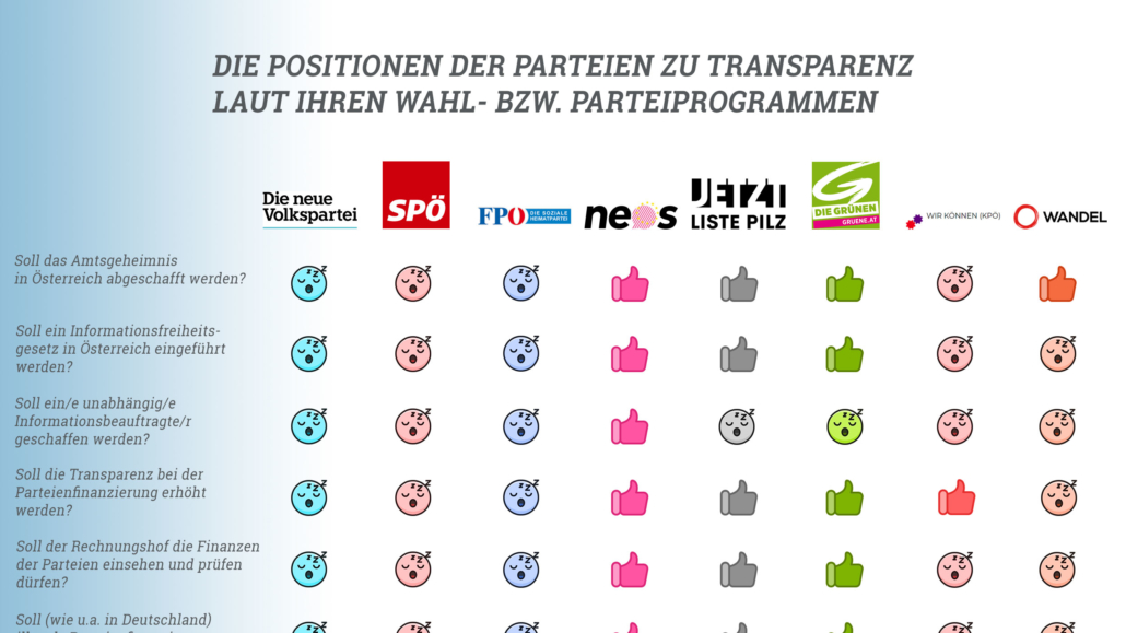 Wir haben uns die Wahlprogramme aller bundesweit zur Nationalratswahl antretenden Parteien angesehen um sie auf Inhalte rund um das Thema Transparenz zu untersuchen.